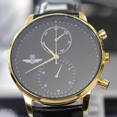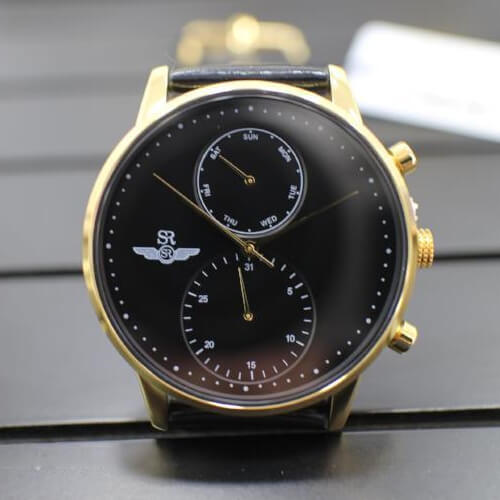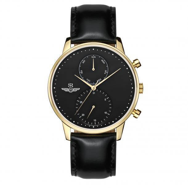 Vẻ nam tính và thanh lịch ẩn chứa trong đồng hồ nam SRWATCH SG5891.4601 với mặt số màu đen, làm nổi bật kim chỉ và vạch số màu vàng đồng bên trong, khung kim loại từ thép không gỉ chắc chắn cùng quai đeo dây da trơn thời thượng.