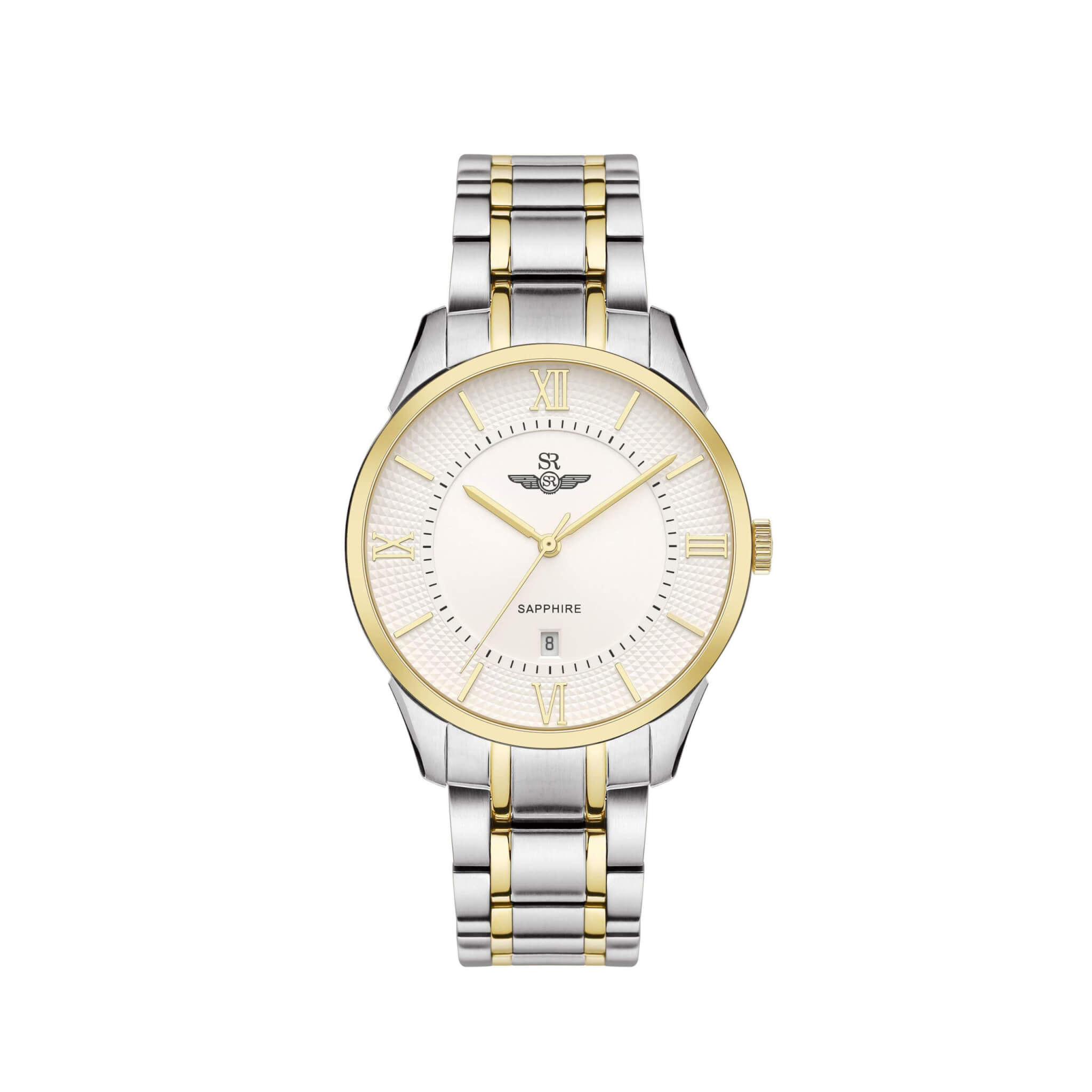 Đồng hồ Nam SG80051.1202CF có thiết kế sang trọng, lịch lãm với vỏ máy và dây đeo đờ mi bằng thép không gỉ được mạ hai màu vàng và bạc xen kẽ, các cọc số và kim chỉ đều được mạ vàng nổi bật trên nền số trắng, mặt kính sapphire chống trầy, có 1 lịch ngày đi kèm, là món trang sức khẳng định chủ quyền cho Nam.
