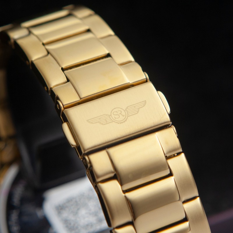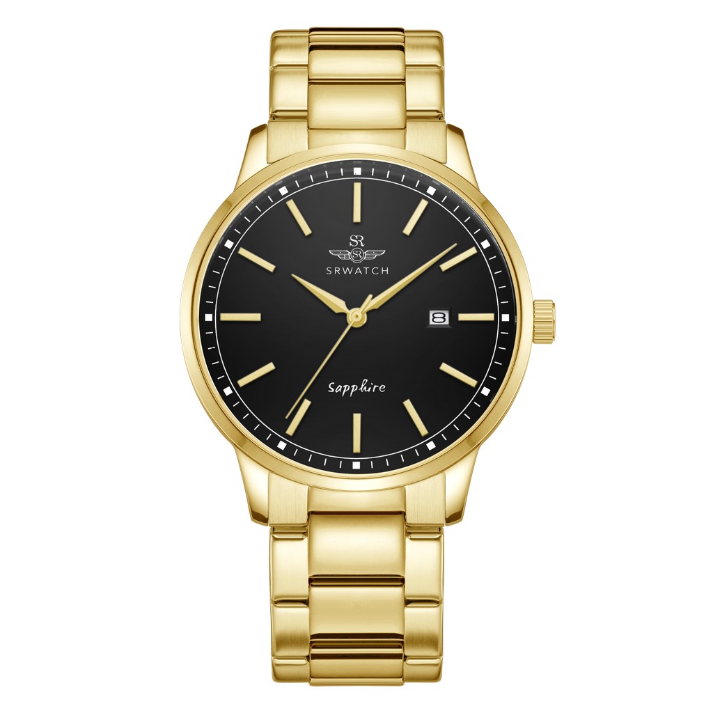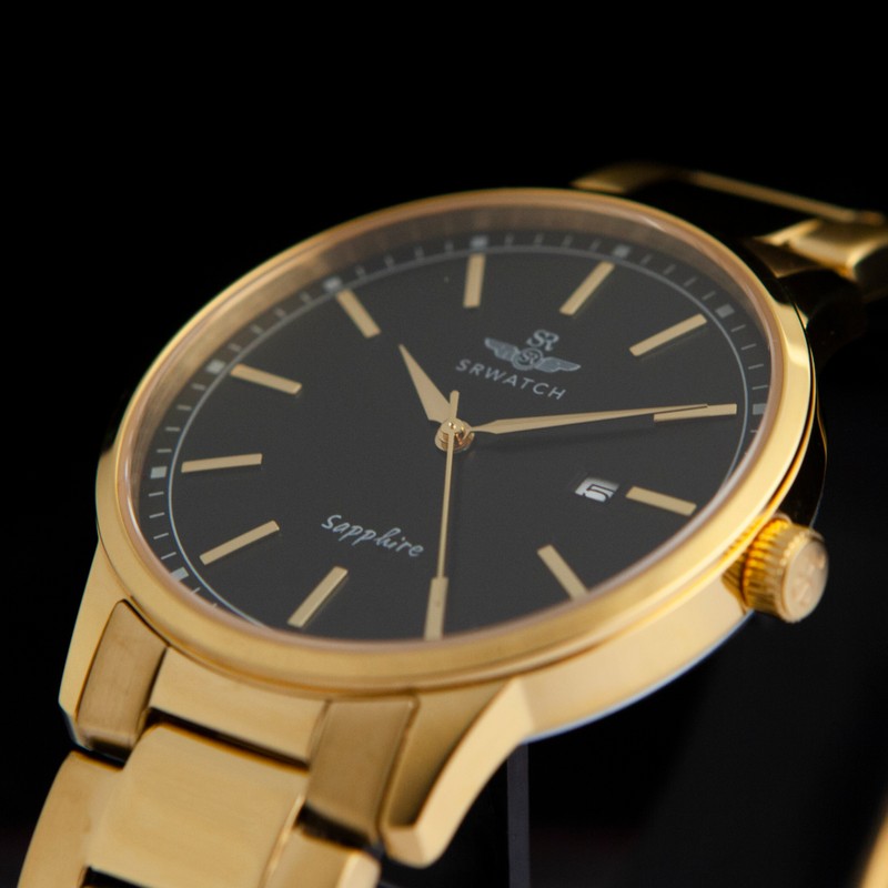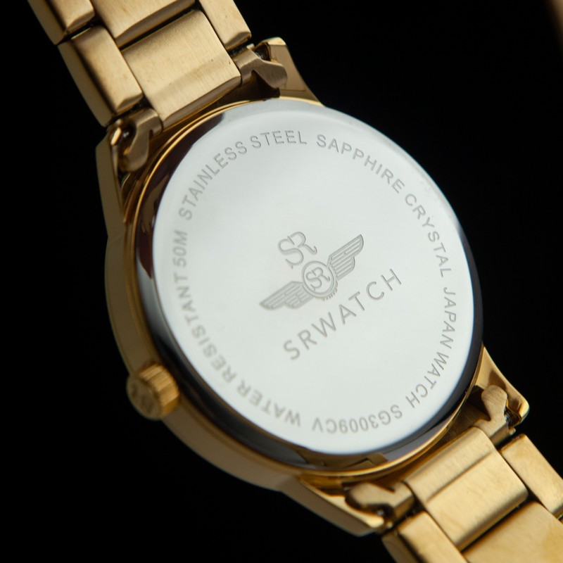 Đồng hồ SG3009.1401CV mặt đen, vỏ và dây kim loại màu vàng thiết kế đầy nam tính và sang trọng dành cho phái mạnh. Vỏ máy và dây đeo bằng chất liệu thép không gỉ mạ vàng bằng công nghệ PVD. Mặt đồng hồ nền màu đen mạnh mẽ trong vỏ mạ vàng, có các cọc số đơn giản sắc nét. Mặt đồng hồ được bảo vệ bởi mặt kính sapphire cao cấp chống trầy, có lịch ngày đi kèm, độ chống nước 5ATM.