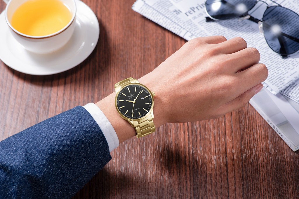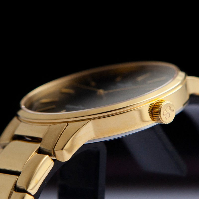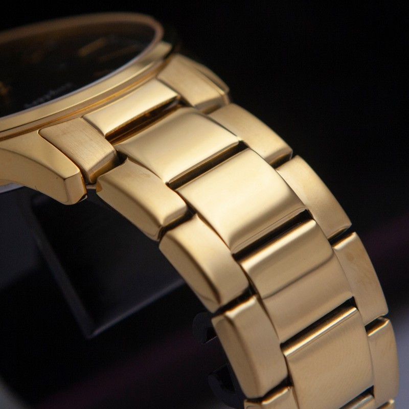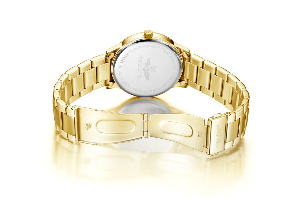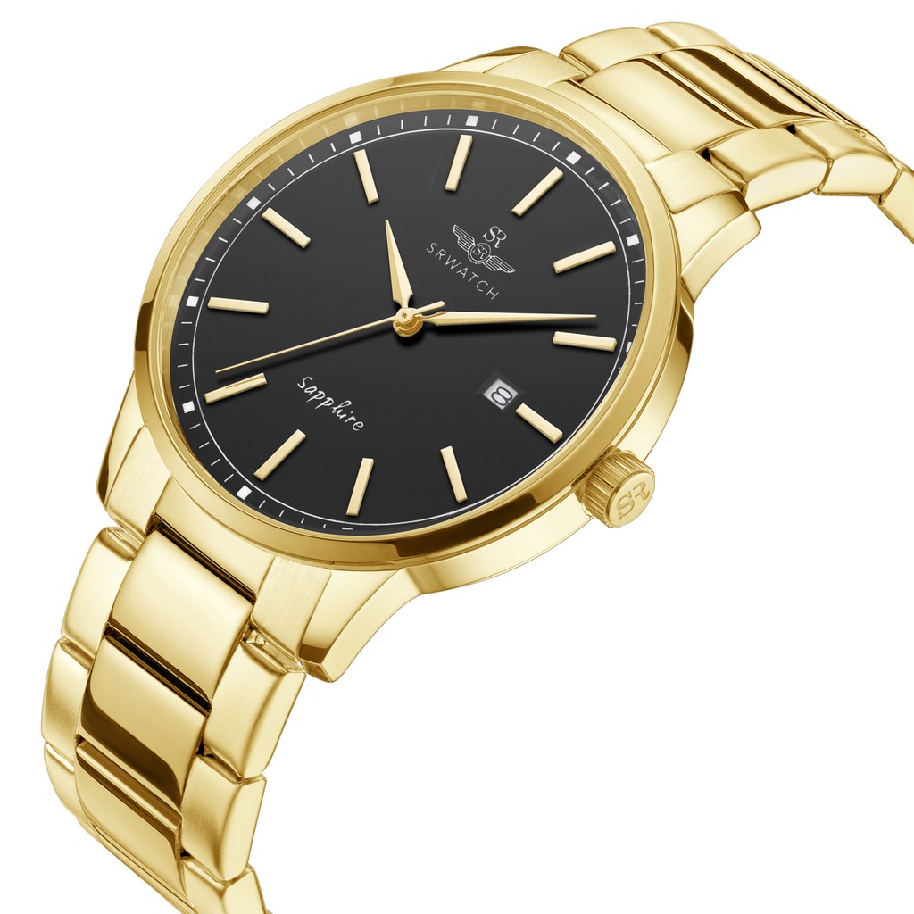 Đồng hồ SG3009.1401CV mặt đen, vỏ và dây kim loại màu vàng thiết kế đầy nam tính và sang trọng dành cho phái mạnh. Vỏ máy và dây đeo bằng chất liệu thép không gỉ mạ vàng bằng công nghệ PVD. Mặt đồng hồ nền màu đen mạnh mẽ trong vỏ mạ vàng, có các cọc số đơn giản sắc nét. Mặt đồng hồ được bảo vệ bởi mặt kính sapphire cao cấp chống trầy, có lịch ngày đi kèm, độ chống nước 5ATM.