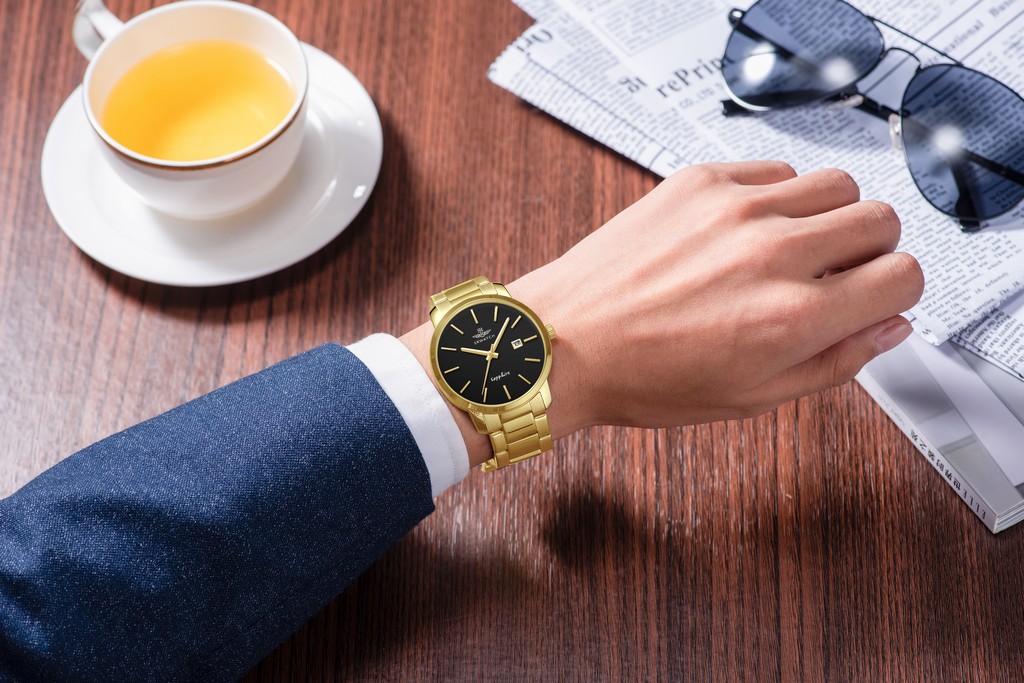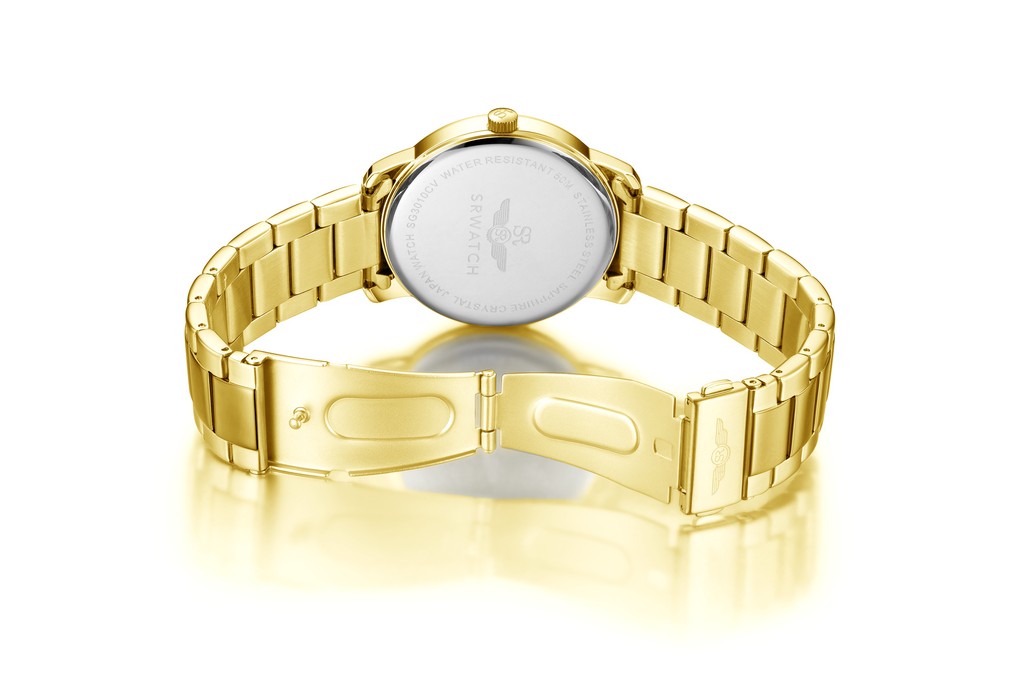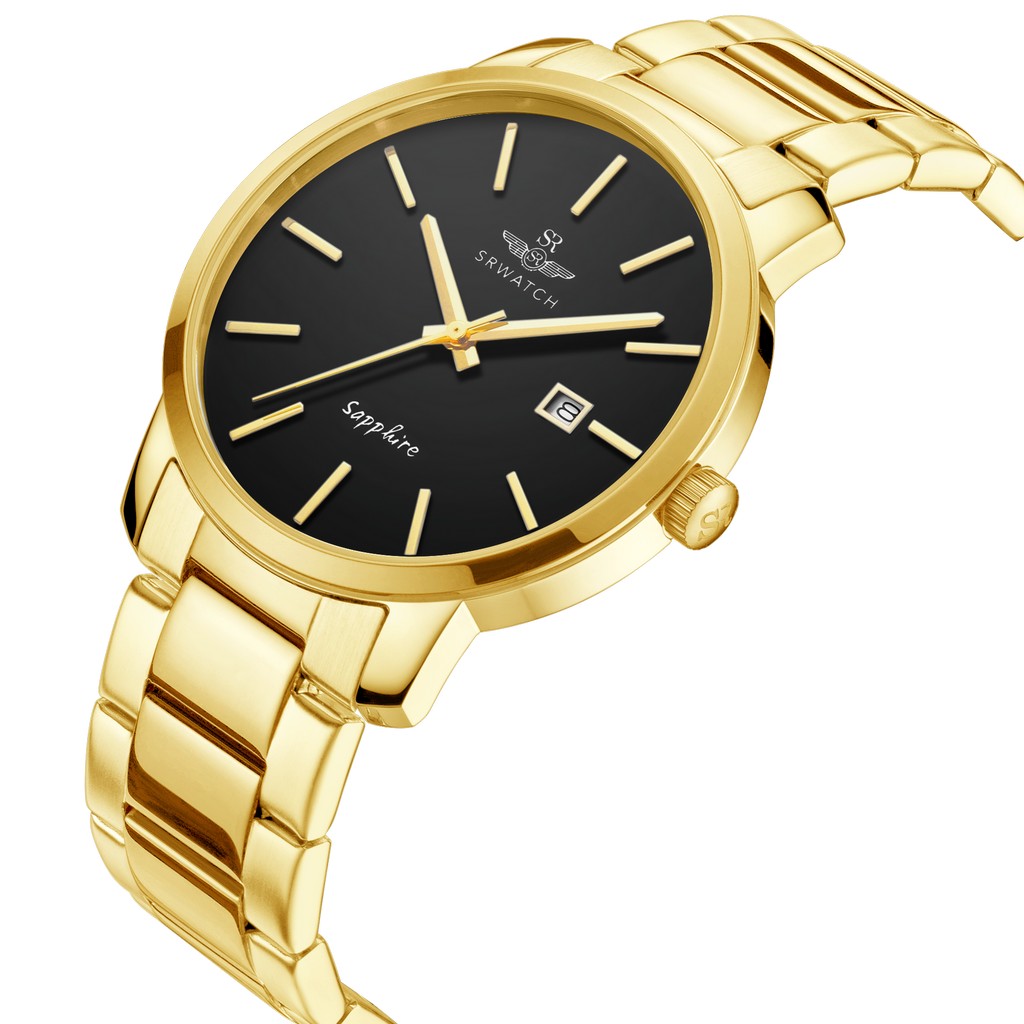 Đồng hồ SG3010.1401CV mặt đen, vỏ và dây kim loại màu vàng thiết kế đầy nam tính và sang trọng dành cho phái mạnh. Vỏ máy và dây đeo bằng chất liệu thép không gỉ mạ vàng bằng công nghệ PVD. Mặt đồng hồ nền màu đen mạnh mẽ trong vỏ mạ vàng, có các cọc số đơn giản sắc nét. Mặt đồng hồ được bảo vệ bởi mặt kính sapphire cao cấp chống trầy, có lịch ngày đi kèm, độ chống nước 5ATM.