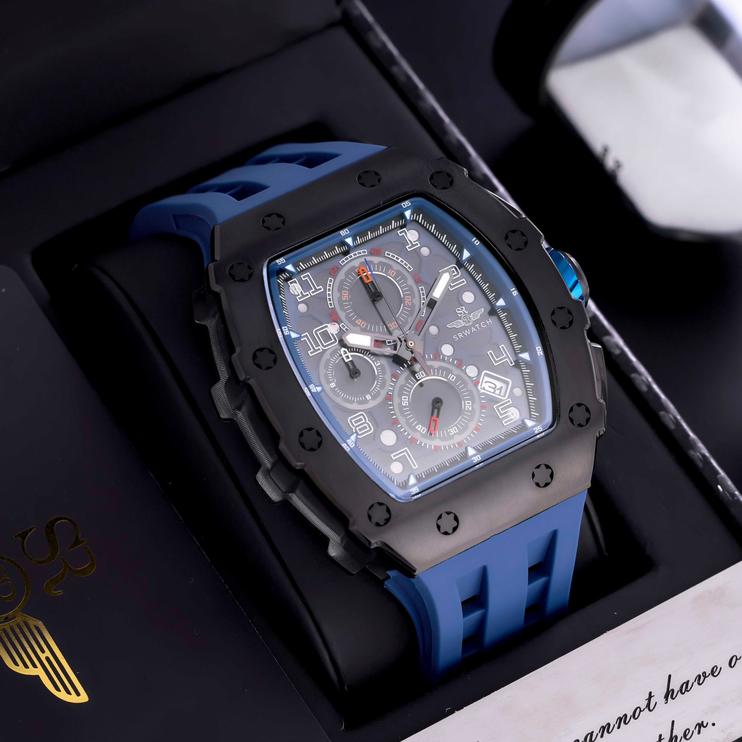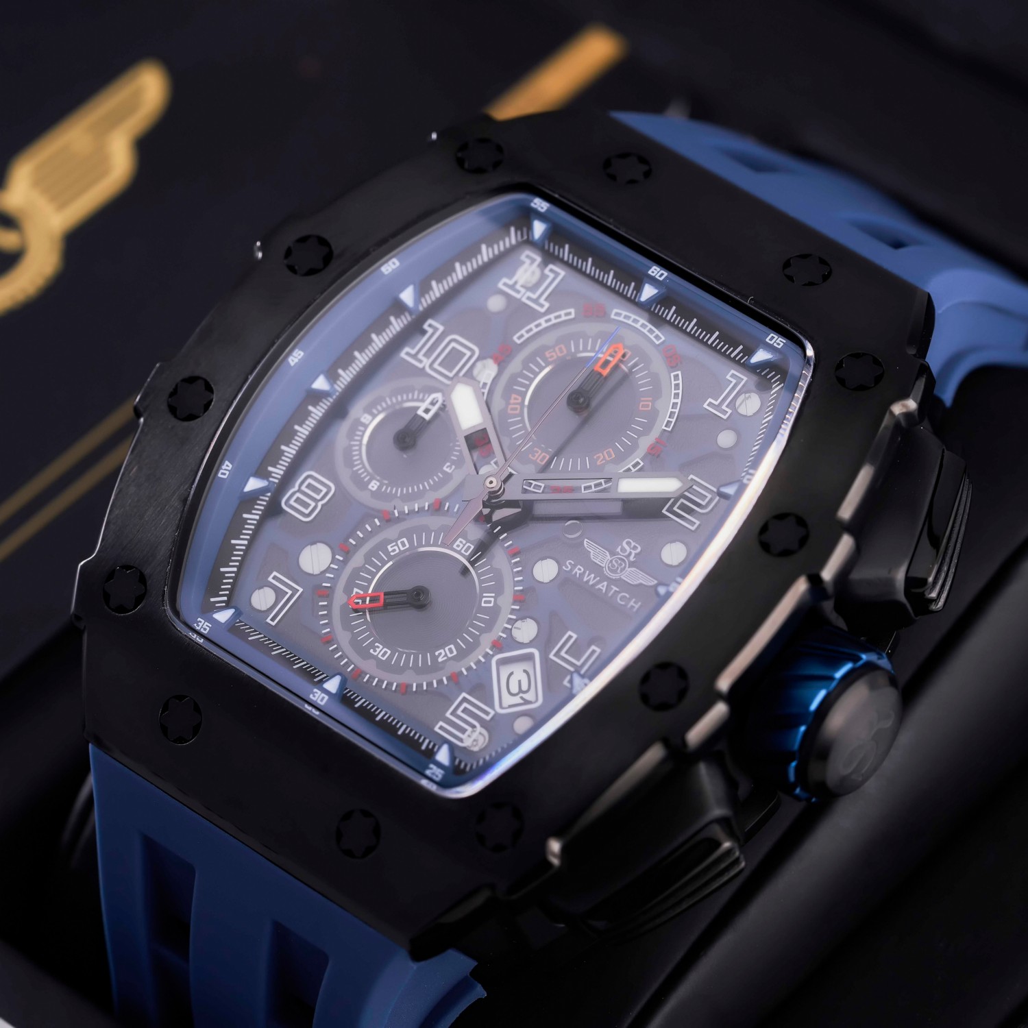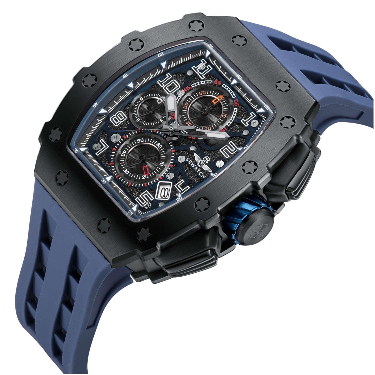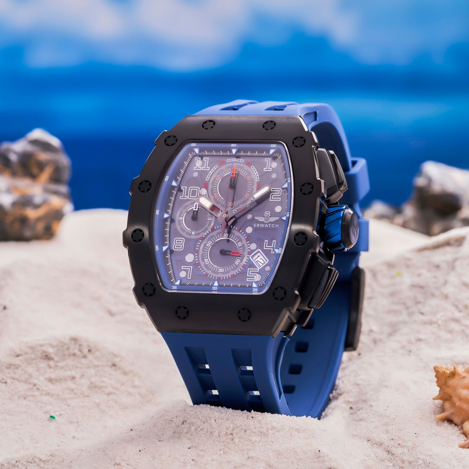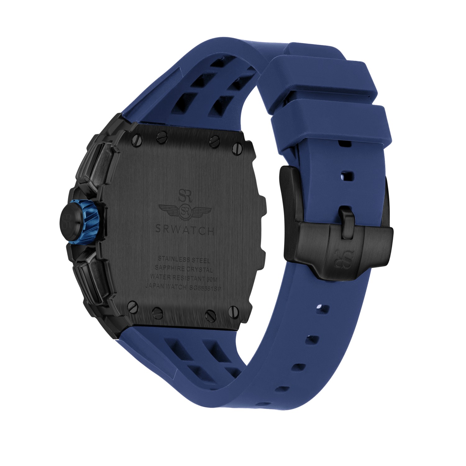 Đồng hồ nam SRWATCH SG88881.4603SP mặt đồng hồ thiết kế thể thao hiện đại. Vỏ đồng hồ được mạ đen Công Nghệ PVD, gia công tỉ mỉ với các điểm nhấn là ốc hình sao 6 cạnh bao quanh mặt với độ hoàn thiện cao tạo nên sự mạnh mẽ. Dây đeo bằng cao su co giản tạo sự thoả mái. Đồng hồ có 3 kim chính cơ bản hiện thị giờ, phút, giấy. Đồng hồ có chức năng chronograph (giờ, phút, giây) thể thao thể hiện bằng 3 mặt đồng hồ nhỏ trung tâm. Kèm theo cửa sổ lịch ngày thuận tiện cho việc sử dụng. Mặt kính sapphire chống xước cao cấp, đạt tiêu chuẩn chống nước 5ATM, đảm bảo sự an tâm cho người đeo.