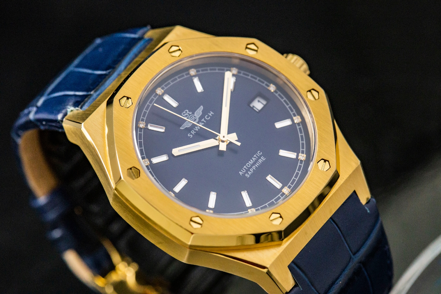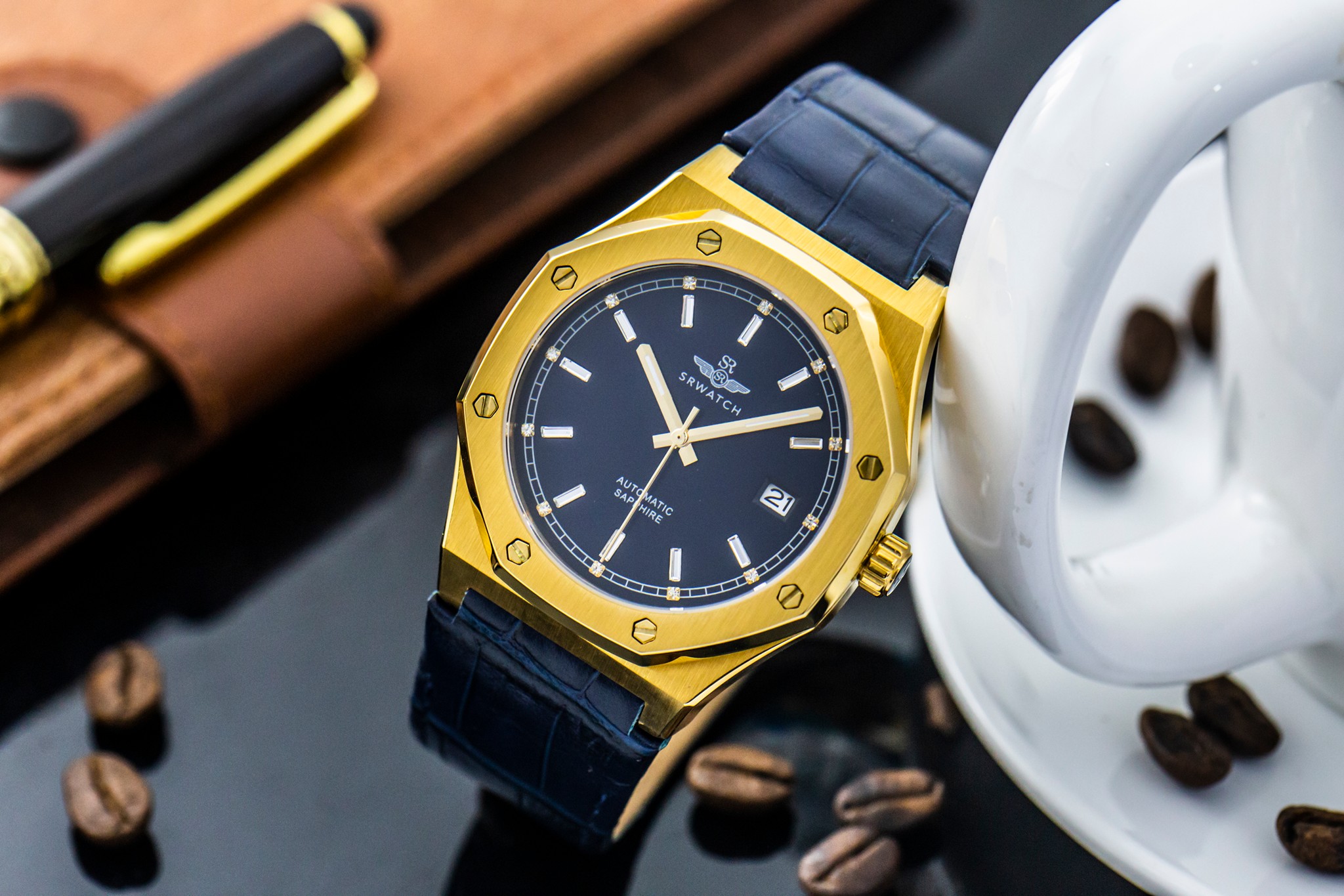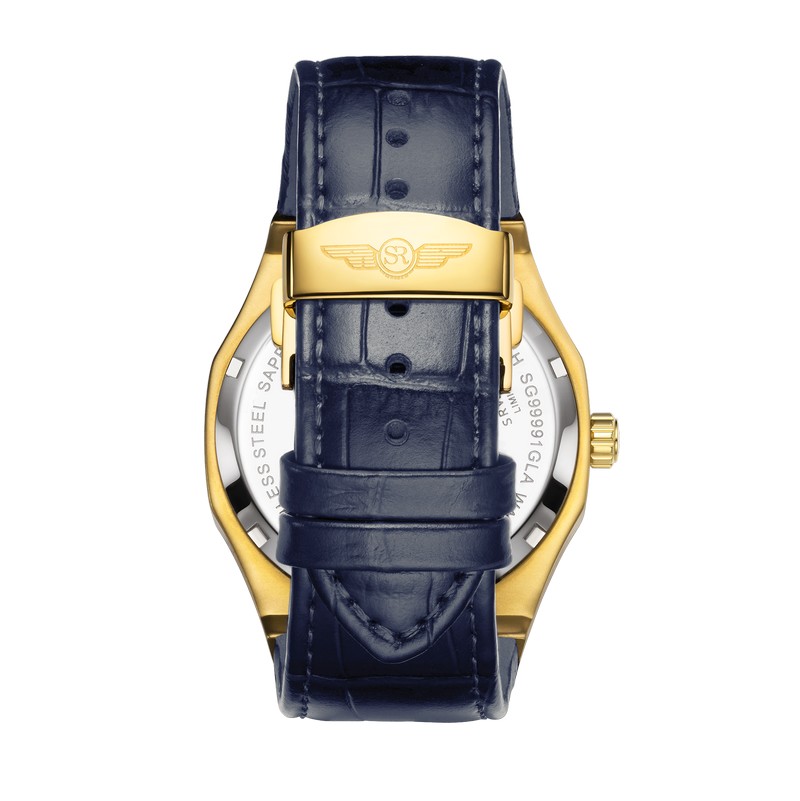 Đồng hồ nam dây da SG99991.4603GLA với thiết kế mạnh mẽ, cá tính dành cho nam. Vỏ đồng hồ bằng chất liệu thép không gỉ 316L được mạ vàng bằng công nghệ PVD. Mặt đồng hồ màu navy đậm kết hợp hài hòa với các cọc chữ số được trang trí bằng đá sang trọng mang lại sự lôi cuốn cho người đeo. Bộ máy Nhật bền bỉ hỗ trợ lịch ngày. Đồng hồ được bảo vệ bởi mặt kính sapphire cao cấp chống trầy và tiêu chuẩn chống nước 5ATM.