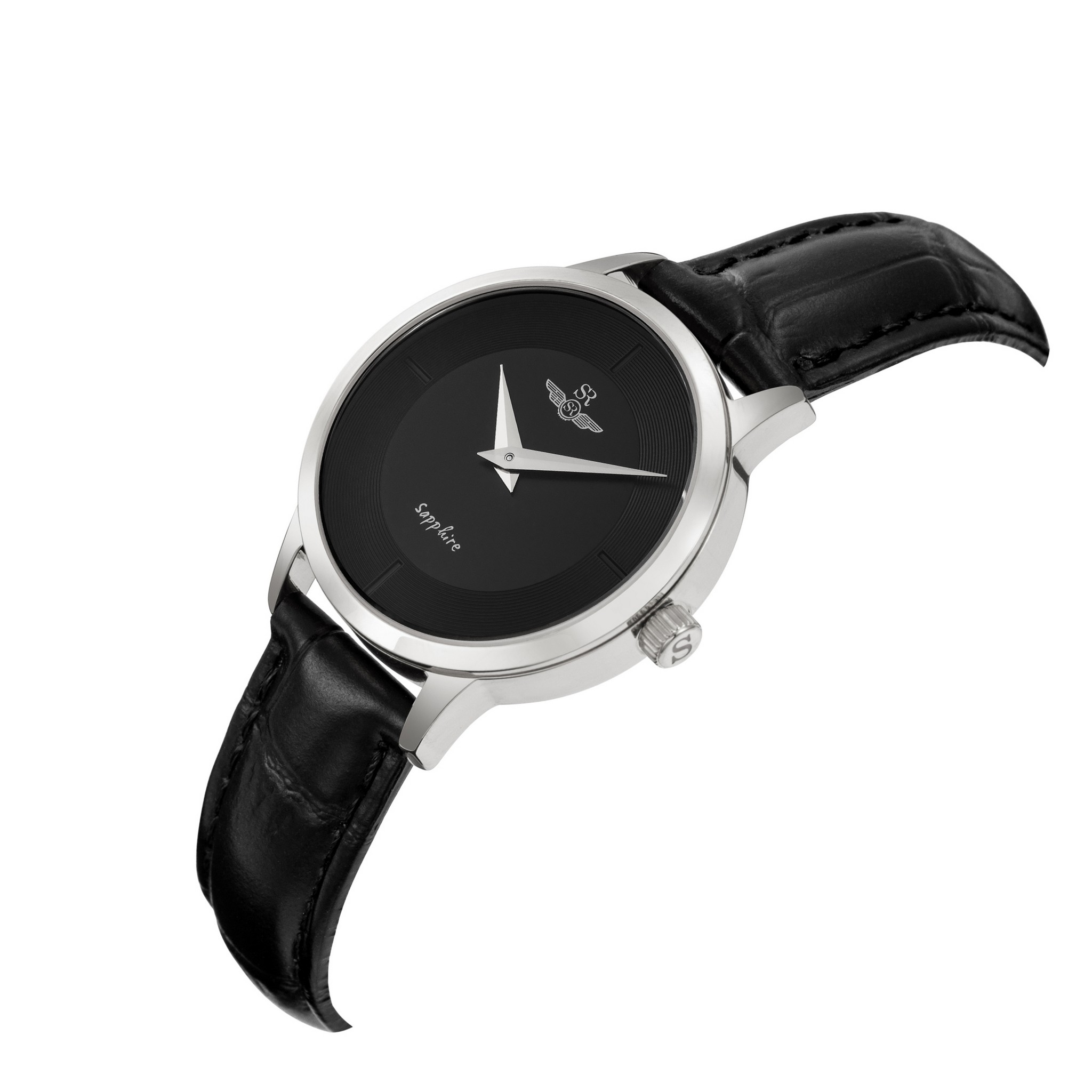 Đồng hồ nữ SRWATCH SL3004.4101CV đen đơn giản, mặt tròn, dây da đen cao cấp, vỏ máy, cọc số thanh mãnh, sắc nét, 2 kim, nút điều chỉnh giờ đều bằng thép không gỉ được mạ sáng bóng nổi bật trên nền đen tăng phần lịch lãm cho người đeo, mặt kính đồng hồbằng sapphire cao cấp chống trầy, chống nước 5 ATM.