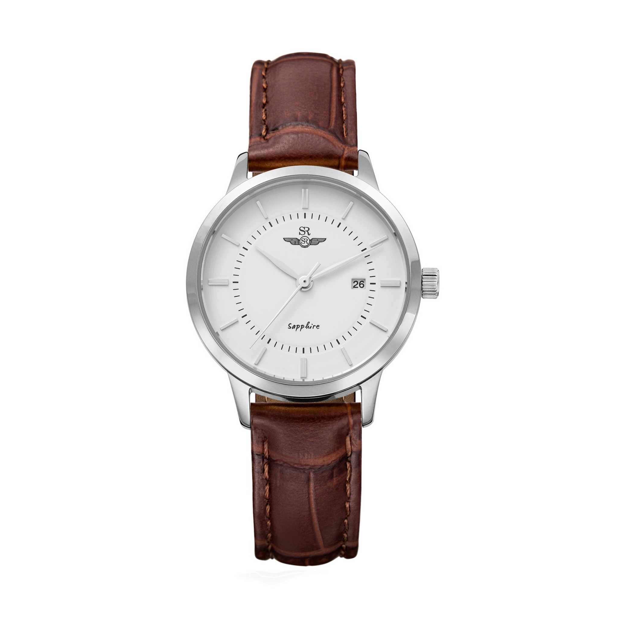 Đồng hồ nữ SRWATCH SL3007.4102CV trắng, mặt tròn, dây da nâu cao cấp, vỏ máy, cọc số thanh mãnh, sắc nét, 3 kim, nút điều chỉnh giờ đều bằng thép không gỉ được mạ sáng bóng nổi bật trên nền trắng tăng phần thanh lịch cho người đeo, mặt kính đồng hồbằng sapphire cao cấp chống trầy, có 1 lịch ngày đi kèm, chống nước 5 ATM.