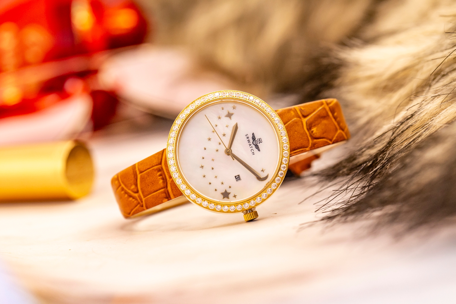 Đồng hồ nữ SL5005.4802BL với thiết kế mặt tròn đơn giản. Trên mặt đồng hồ được trang trí các hoạ tiết đơn giản nhưng tinh tế và sắc nét tạo sự lôi cuốn nữ tính. Vỏ đồng hồ bằng thép không gỉ được mạ vàng và đính đá viền ngoài tạo sự sang trọng, đẳng cấp cho người đeo. Mặt đồng hồ nền trắng đơn giản với 3 kim màu vàng nổi bật và lịch ngày hỗ trợ. Sử dụng mặt kính sapphire cao cấp chống trầy cùng với tiêu chuẩn chống nước 5ATM đảm bảo mang đến sự an tâm.