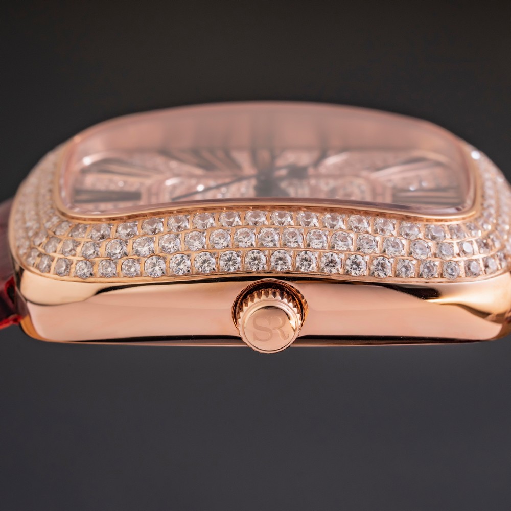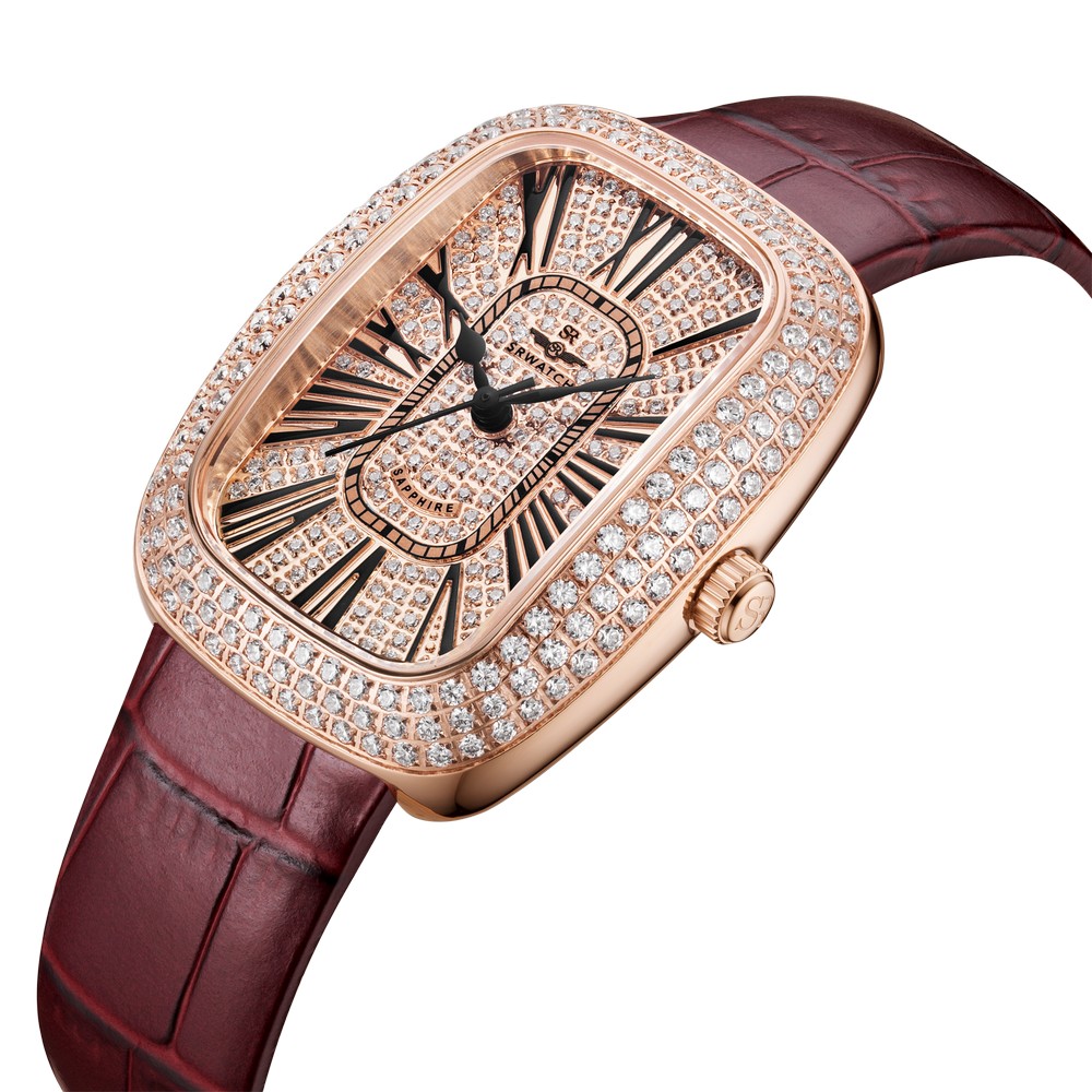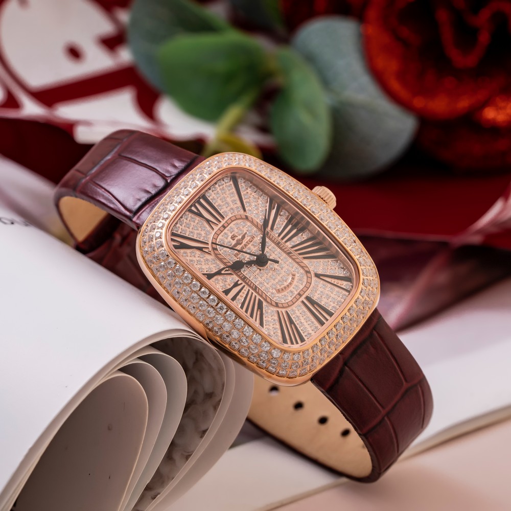 Đồng hồ nữ SL5009.9502BL thiết kế sang trọng dành cho phái đẹp với vỏ máy bằng chất liệu thép không gỉ mạ vàng hồng bằng công nghệ PVD, có các cọc chữ số la mã xoay vòng theo hình dáng vỏ ngoài. Mặt và vỏ đồng hồ được đính đá vô cùng tinh xảo, tạo hiệu ứng ánh sáng lấp lánh với ánh sắc cầu vồng mang lại sự sang trọng cho người đeo. Thân đồng hồ với góc cong độc đáo tạo sự thoả mái và tự tin cho phái đẹp khi đeo.  Mặt đồng hồ được bảo vệ bởi mặt kính sapphire cao cấp chống trầy, độ chống nước tiêu chuẩn 5ATM.