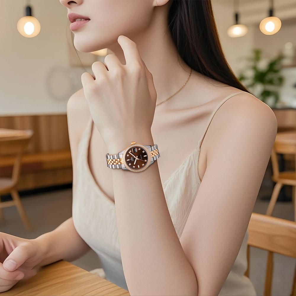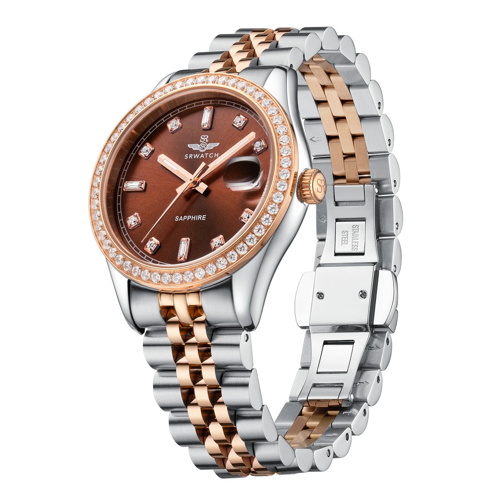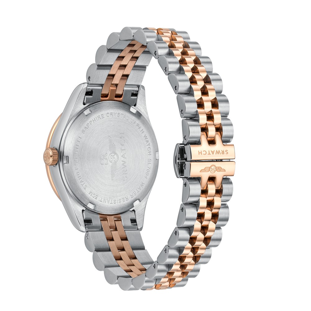 Đồng hồ nữ SRWATCH SL7004.1205 có thiết kế mặt tròn. Đồng hồ phối 2 màu vàng hồng – trắng sang trọng,tinh tế. Vỏ và dây đeo thép không gỉ cao cấp kết hợp lớp mạ công nghệ PVD bền bỉ. Các số và kim nổi bật, hài hòa trên mặt đồng hồ. Cọc số được đính đá sang trọng. Mặt kính sapphire chống xước cao cấp cùng chuẩn chống nước 5ATM tạo sự an tâm cho người dùng. Đồng hồ kèm chức năng lịch ngày tiện dụng.