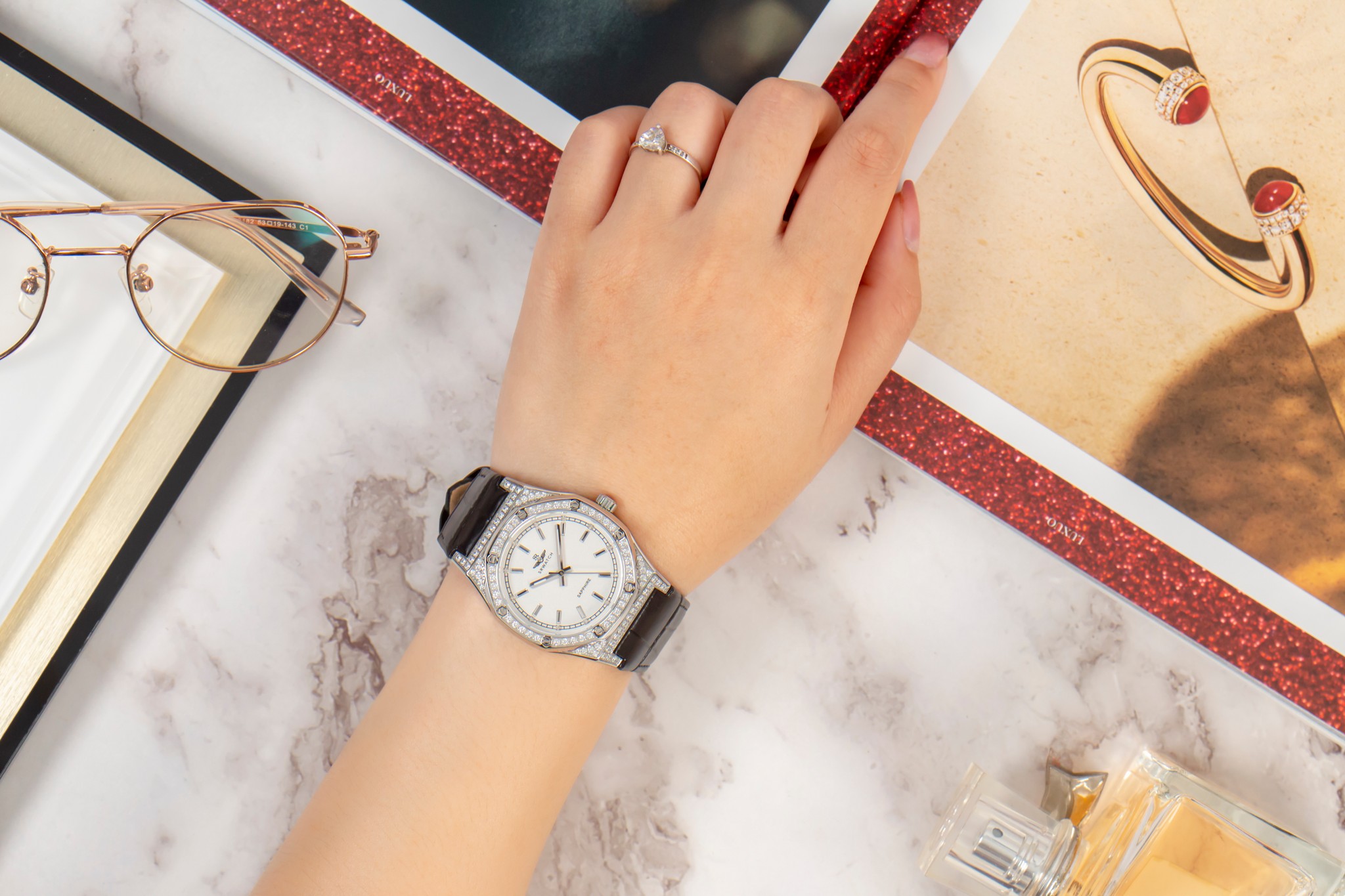 Đồng hồ nữ dây da SL99993.4102GLA với thiết kế sang trọng, cá tính dành cho nữ. Vỏ đồng hồ bằng chất liệu thép không gỉ 316L. Mặt trên được đính đá tinh tế. Mặt đồng hồ màu trắng kết hợp hài hòa với các cọc chữ số được trang trí bằng đá sang trọng mang lại sự lôi cuốn cho người đeo. Bộ máy Nhật bền bỉ hỗ trợ lịch ngày. Đồng hồ được bảo vệ bởi mặt kính sapphire cao cấp chống trầy và tiêu chuẩn chống nước 5ATM.