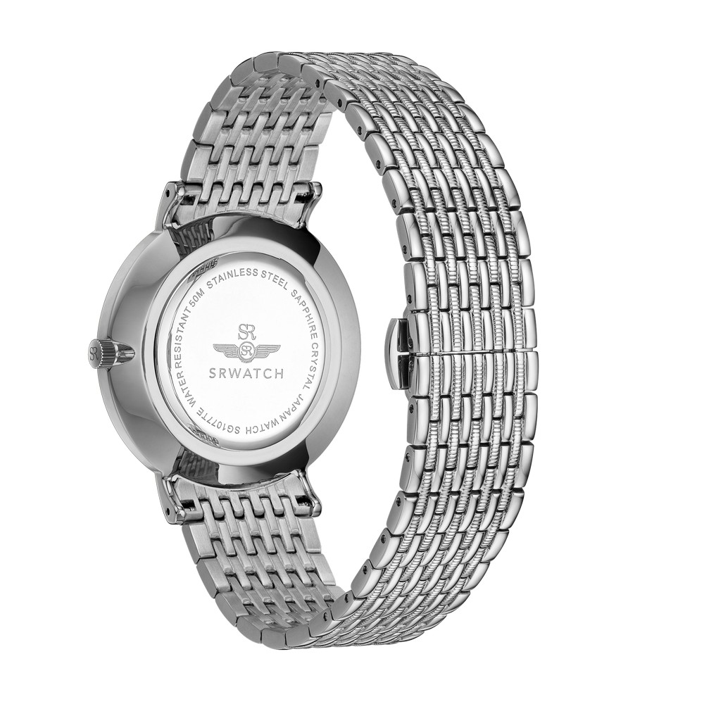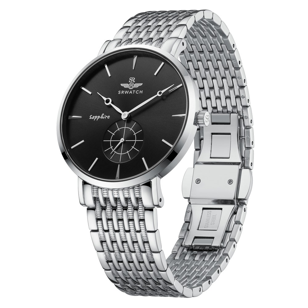 SRWATCH SG1077.1101TE gây ấn tượng với thiết kế mặt tròn nền đen tinh tế, tôn lên vẻ lịch lãm và đẳng cấp của quý ông hiện đại. Vỏ và dây thép không gỉ được hoàn thiện chắc chắn, tạo cảm giác sang trọng và bền bỉ theo thời gian.Mặt số tối giản, hài hòa cùng kim trắng thanh thoát và vạch giờ sắc nét, mang lại vẻ đẹp trang nhã nhưng đầy cuốn hút. Đồng hồ được trang bị kính sapphire chống trầy xước và khả năng chống nước 5ATM, đảm bảo sự an tâm trong quá trình sử dụng hằng ngày.