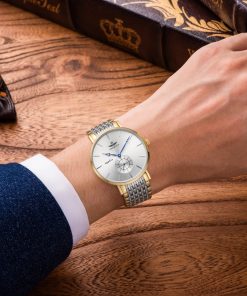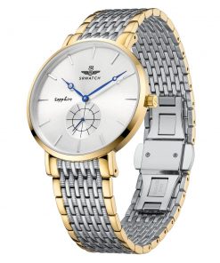 SRWATCH SG1077.1202TE gây ấn tượng với thiết kế mặt tròn nền trắng tinh tế, tôn lên vẻ lịch lãm và đẳng cấp của quý ông hiện đại. Vỏ và dây thép demi không gỉ được mạ vàng công nghệ PVD cao cấp được hoàn thiện chắc chắn, tạo cảm giác sang trọng và bền bỉ theo thời gian.Mặt số tối giản, hài hòa cùng kim xanh thanh thoát và vạch giờ sắc nét, mang lại vẻ đẹp trang nhã nhưng đầy cuốn hút. Đồng hồ được trang bị kính sapphire chống trầy xước và khả năng chống nước 5ATM, đảm bảo sự an tâm trong quá trình sử dụng hằng ngày.