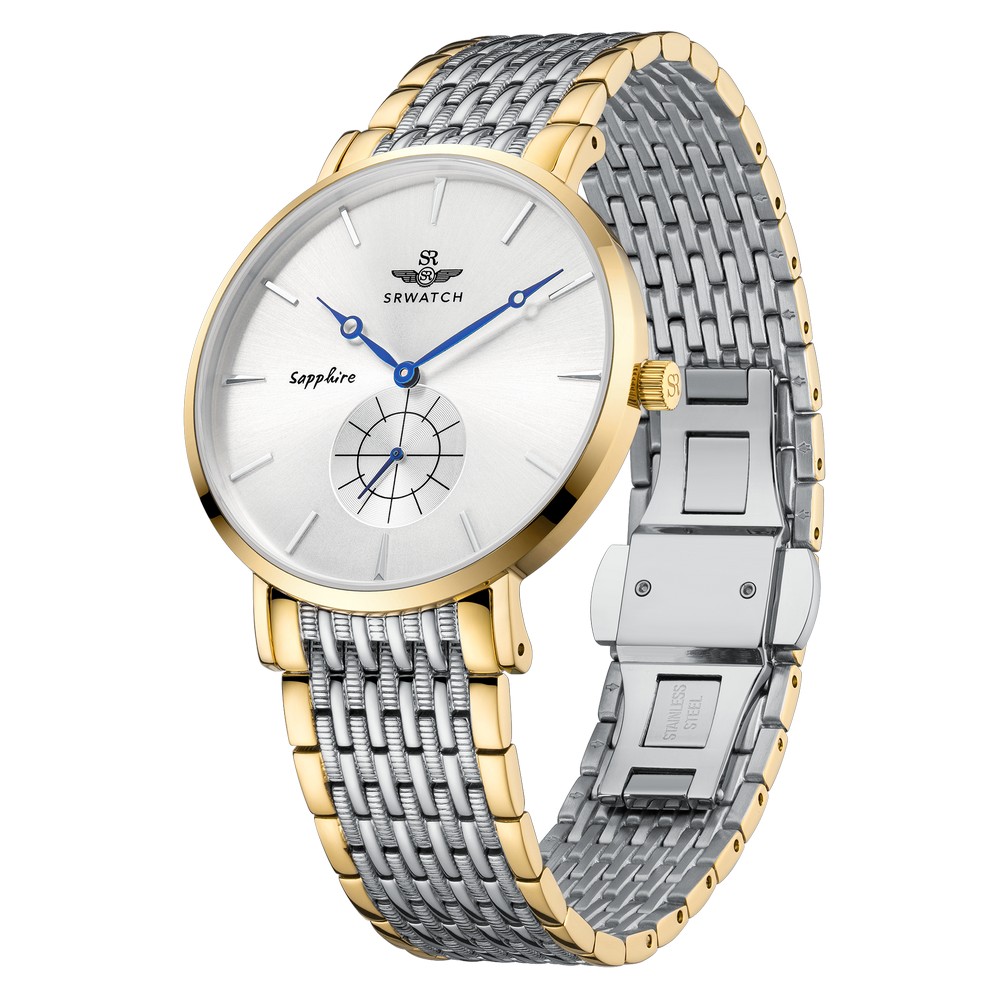 SRWATCH SG1077.1202TE gây ấn tượng với thiết kế mặt tròn nền trắng tinh tế, tôn lên vẻ lịch lãm và đẳng cấp của quý ông hiện đại. Vỏ và dây thép demi không gỉ được mạ vàng công nghệ PVD cao cấp được hoàn thiện chắc chắn, tạo cảm giác sang trọng và bền bỉ theo thời gian.Mặt số tối giản, hài hòa cùng kim xanh thanh thoát và vạch giờ sắc nét, mang lại vẻ đẹp trang nhã nhưng đầy cuốn hút. Đồng hồ được trang bị kính sapphire chống trầy xước và khả năng chống nước 5ATM, đảm bảo sự an tâm trong quá trình sử dụng hằng ngày.